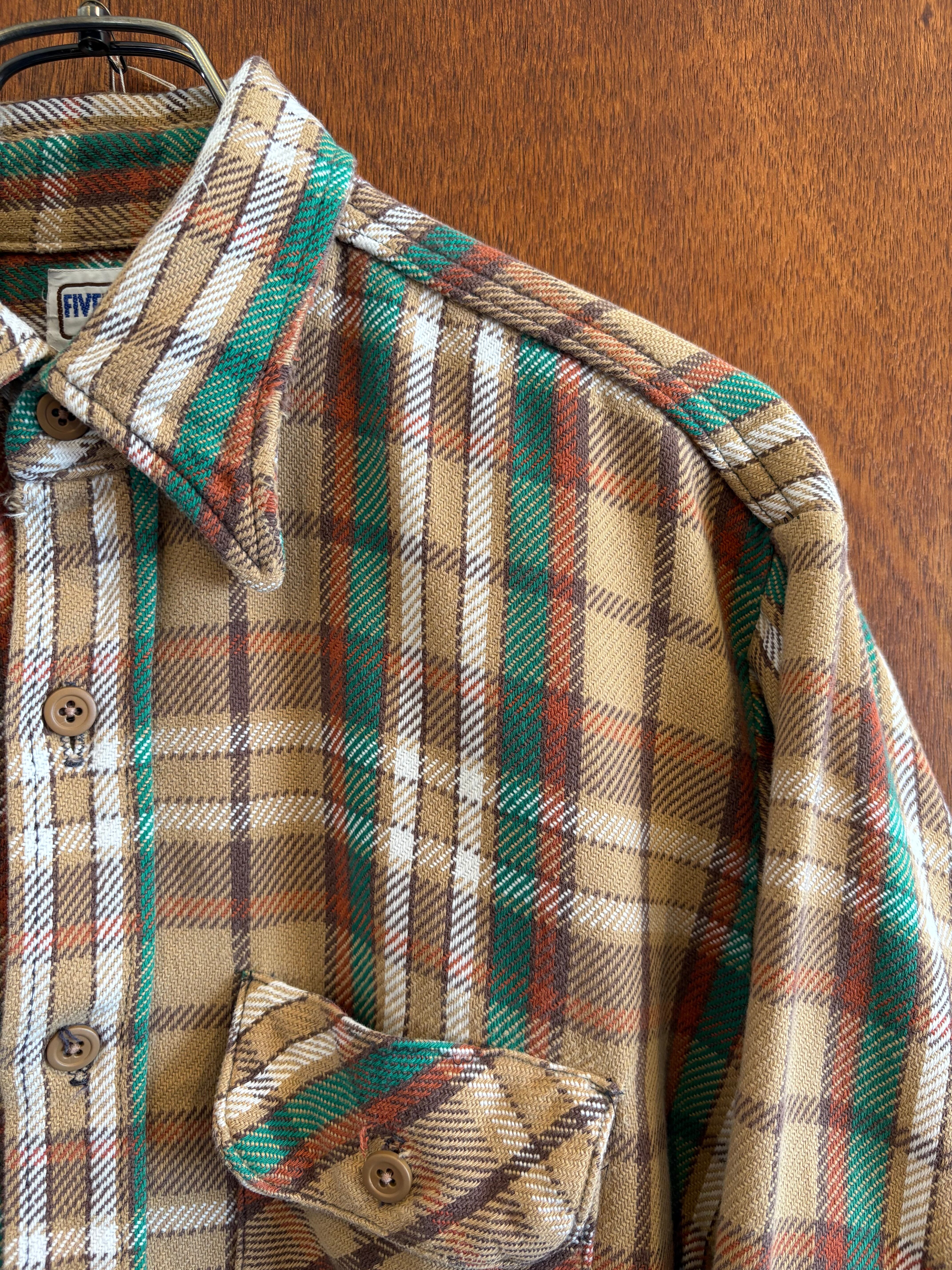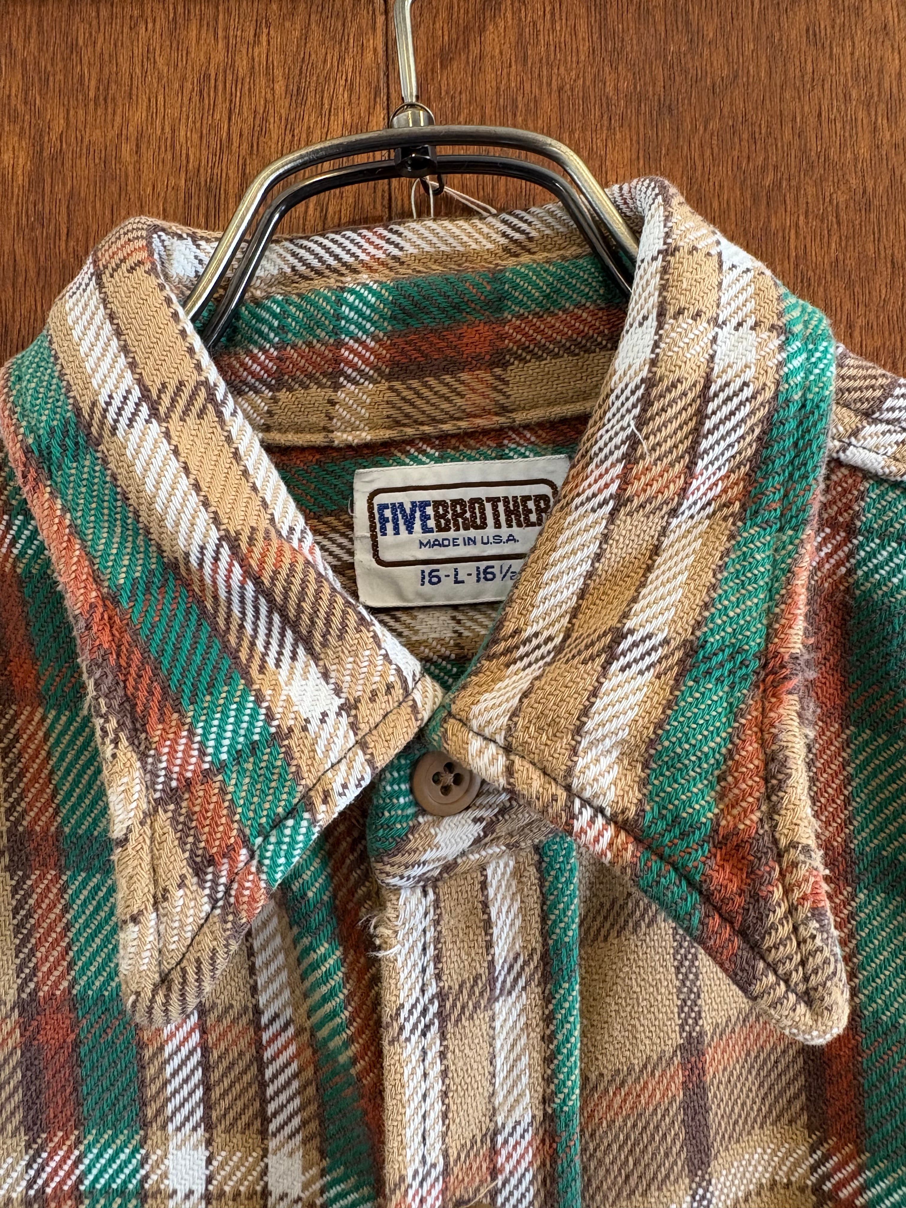70s-80s FIVE BROTHERS ファイブブラザーズ ネルシャツ ヘビネル アメリカ製 Lサイズ