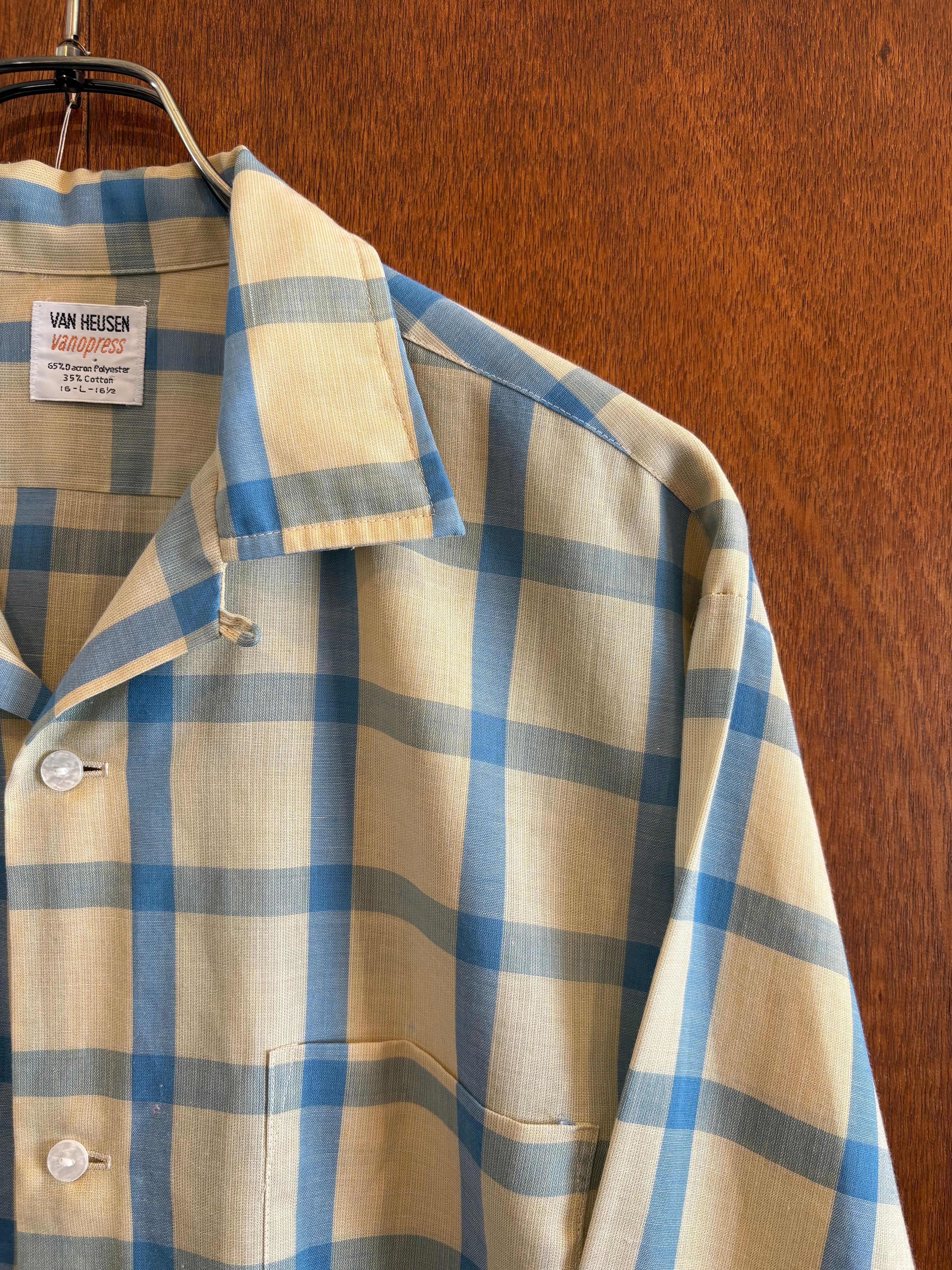 50s-60s VAN HEUSEN ループカラー チェックシャツ アメリカ製 Lサイズ
